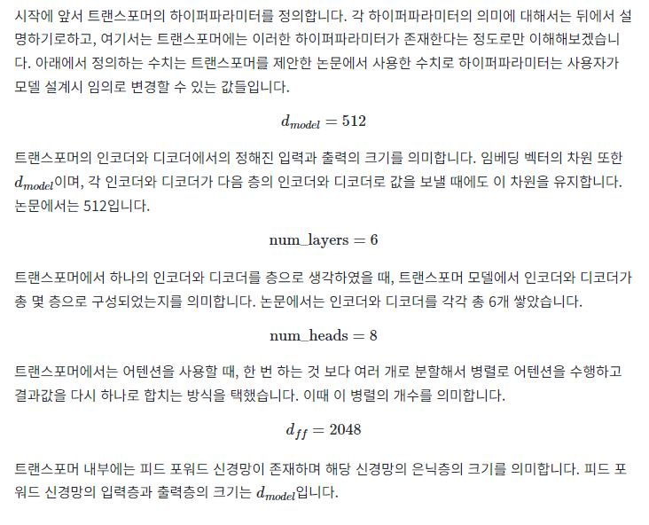 * 이번 챕터는 앞서 설명한 어텐션 메커니즘 챕터에 대한 사전 이해가 필요합니다. 트랜스포머(Transformer)는 2017년 구글이 발표한 논문인 Attention i…