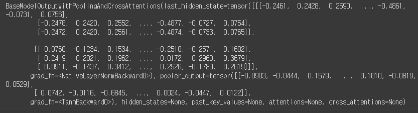 # pooler_output : 입력 시퀀스에서 추출한 특징의 요약