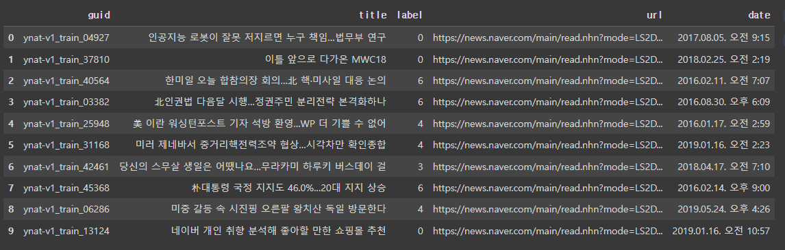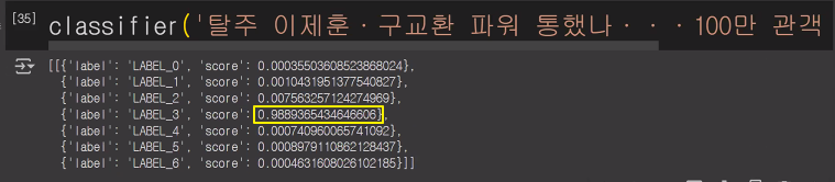 | ''' 0 (IT과학) 1 (경제) 2 (사회) 3 (생활문화) 4 (세계) 5 (스포츠) 6 (정치) ''' ![]() ![]() |