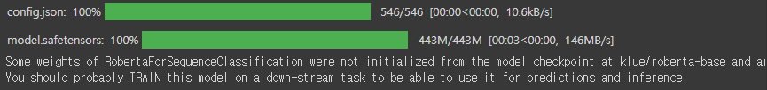 num_labels = 7 # 분류할 클래스의 개수, 예를 들어 감정분석에서는 긍정, 부정 등의 클래스 수