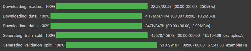 | {'input_ids': [[0, 10637, 8474, 22, 2210, 2299, 2118, 28940, 3691, 4101, 3792, 2], [0, 24905, 1042, 4795, 19982, 2129, 121, 6904, 16311, 3, 14392, 2], [0, 4172, 3797, 3728, 2107, 2134, 3777, 904, 6022, 2332, 2113, 2259, 4523, 1380, 2259, 2062, 2], [0, 12417, 2155, 7840, 604, 2859, 3873, 11554, 2522, 1539, 2073, 8446, 6626, 18818, 575, 2], [0, 13203, 2179, 2366, 4197, 7551, 2096, 8542, 2088, 2353, 886, 1244, 4393, 2027, 22, 2207, 8189, 2]], 'attention_mask': [[1, 1, 1, 1, 1, 1, 1, 1, 1, 1, 1, 1], [1, 1, 1, 1, 1, 1, 1, 1, 1, 1, 1, 1], [1, 1, 1, 1, 1, 1, 1, 1, 1, 1, 1, 1, 1, 1, 1, 1, 1], [1, 1, 1, 1, 1, 1, 1, 1, 1, 1, 1, 1, 1, 1, 1, 1], [1, 1, 1, 1, 1, 1, 1, 1, 1, 1, 1, 1, 1, 1, 1, 1, 1, 1]]} |