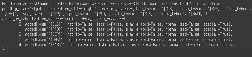◼ preTrainedTokenizerFast: 허깅페이스에서 개발한 Rust 기반의 고성능 토크나이저