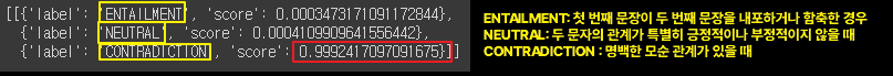 2. 예시) prediction ("sent1, sent2") [ 모순 ]