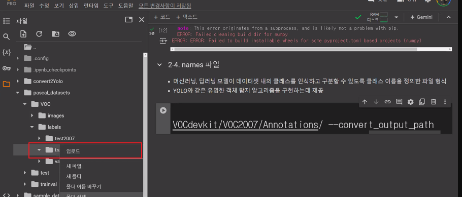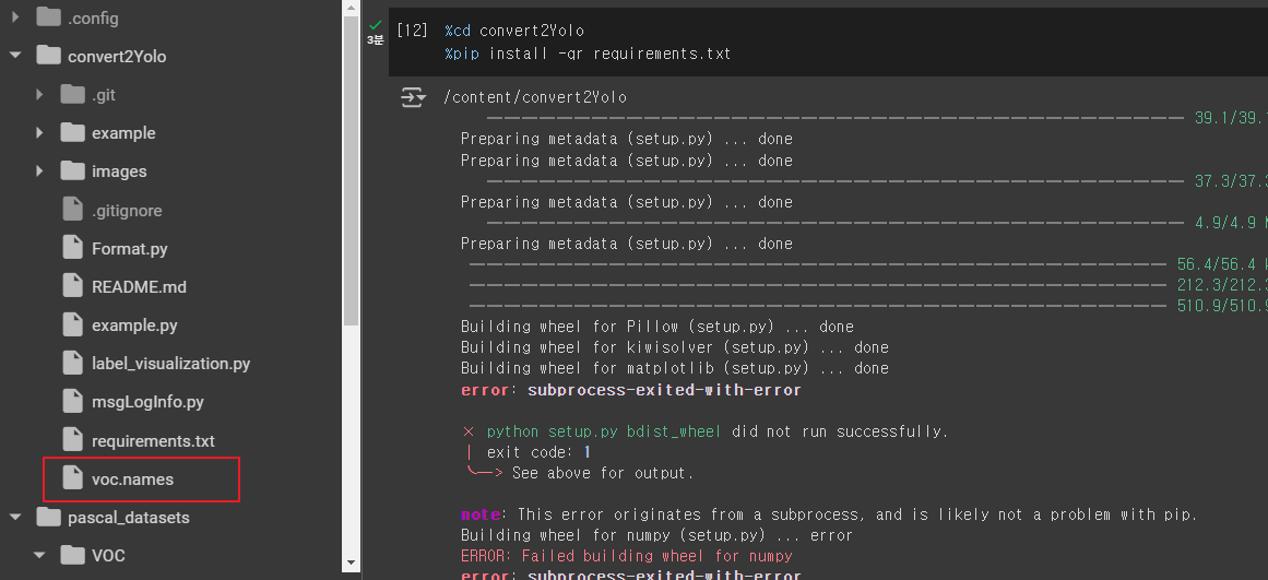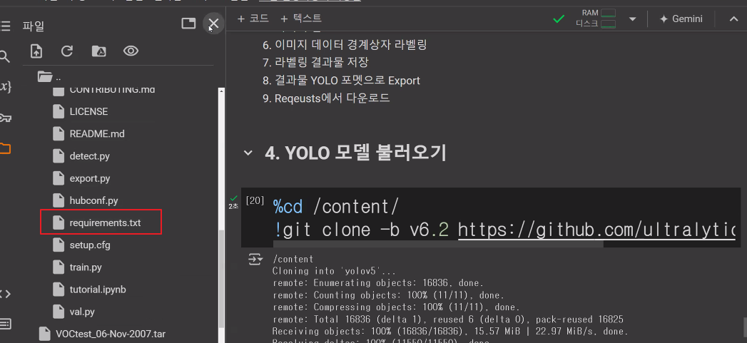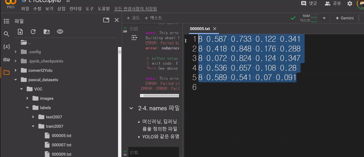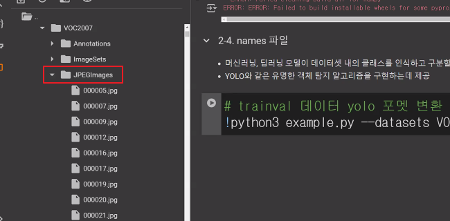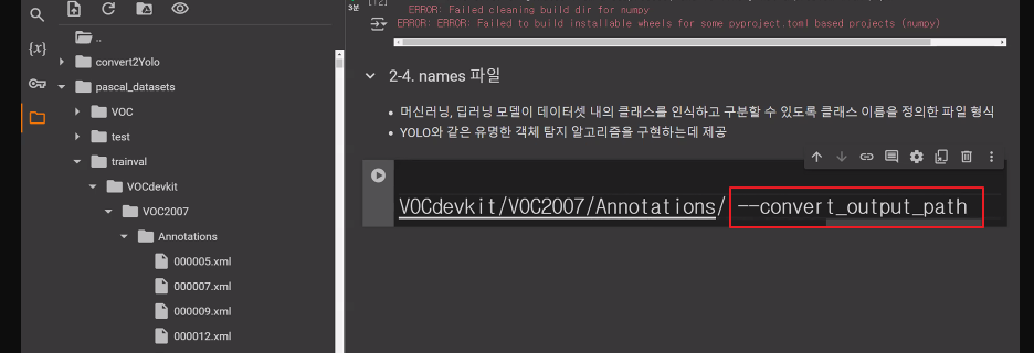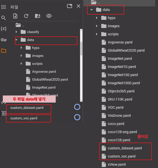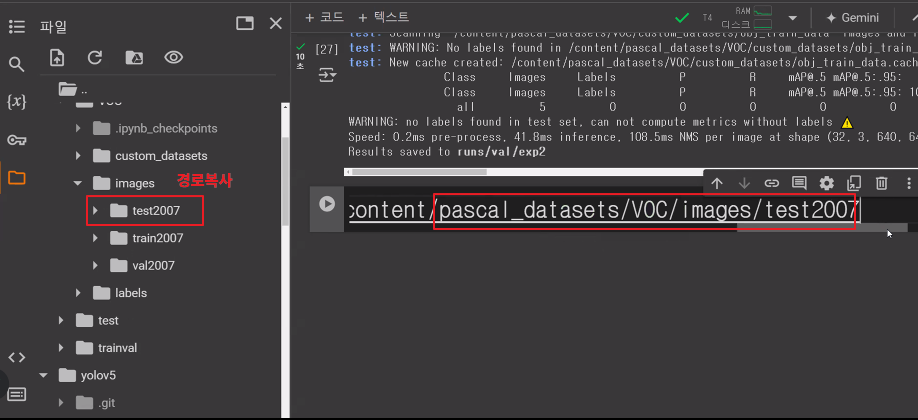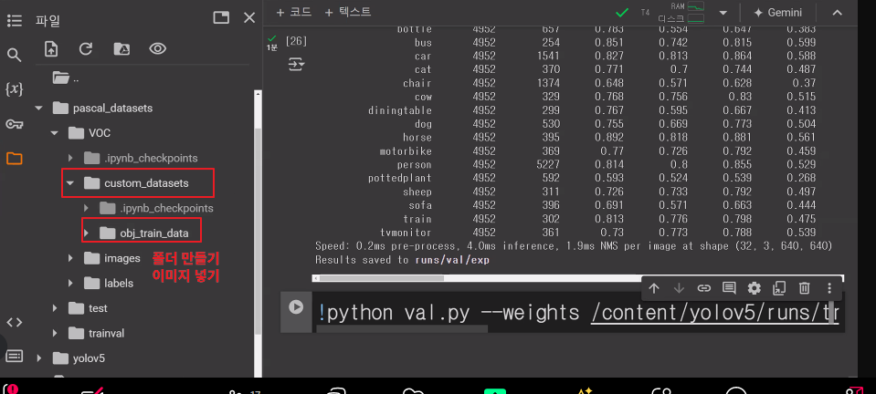 * /content/pascal_datasets/trainval/VOCdevkit/VOC2007/ImageSets/Main/val.txt * /content/pascal_datasets/VOC/labels/train2007 파일 중 위 txt 문서에 있는 파일을 /content/pascal_datasets/VOC/labels/val2007 로 옮기기
