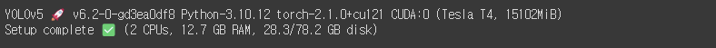 --weights yolov5s.pt: 사전 훈련된 YOLOv5s (small) 모델 가중치를 사용합니다. 이 가중치는 훈련 시작 시 모델의 초기 상태로 사용됩니다.