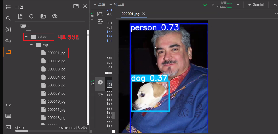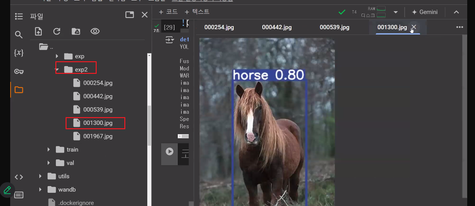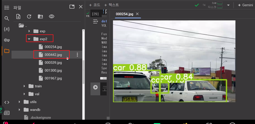 /content/yolov5 디렉토리로 이동한 후, train.py 스크립트를 실행하여 YOLOv5 모델을 지정된 파라미터로 훈련시키는 명령입니다. 훈련 과정은 입력 이미지 크기, 배치 크기, 에포크 수, 데이터셋 구성 파일, ㅠ사전 훈련된 가중치, 랜덤 시드를 사용하여 설정됩니다.