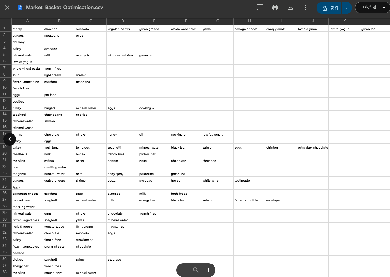 ◼ 장바구니 데이터