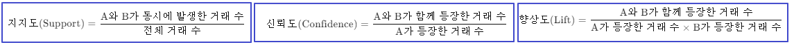 어떤 항목들이 함께 자주 등장하는지를 파악하는 데 활용됩니다.
