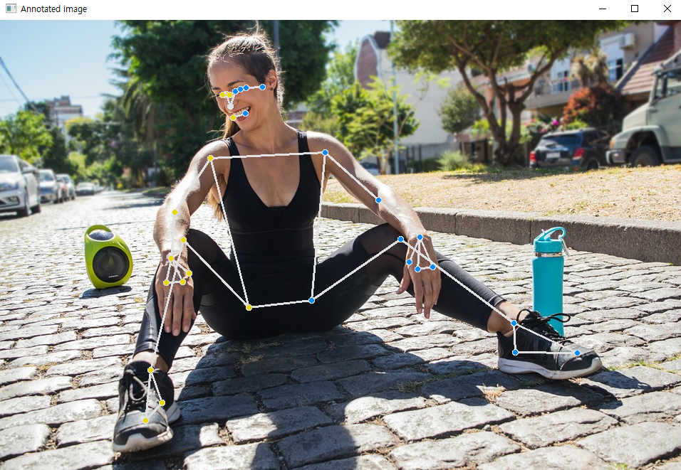 cv2.imshow('Annotated image', cv2.cvtColor(annotated_image, cv2.COLOR_RGB2BGR))