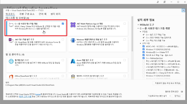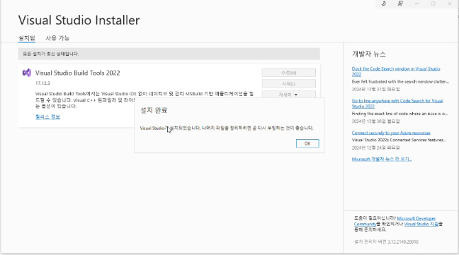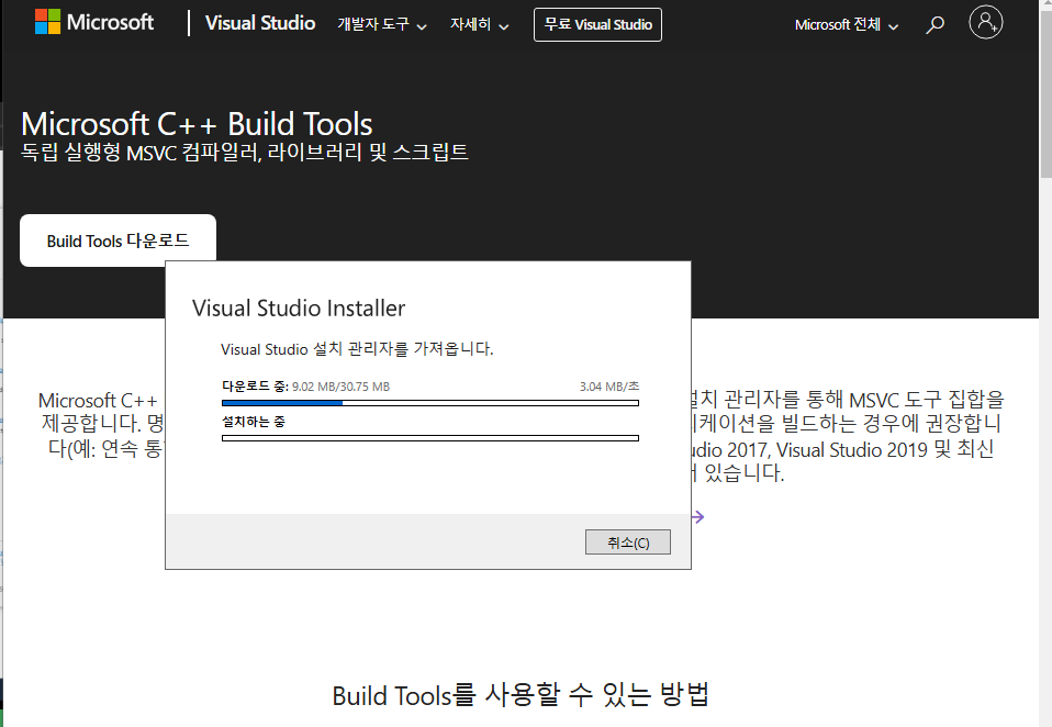 ✔오류시 C++ Build Tools 설치 필요![]() ✔ 링크: https://visualstudio.microsoft.com/ko/visual-cpp-build-tools/ ![]() ![]() ![]() |