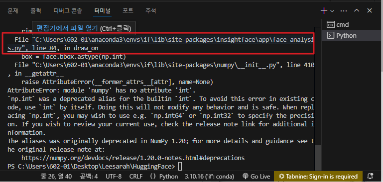 ◼ insightface 설치 (vscode_terminal_cmd)