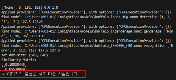print("두 이미지의 얼굴은 서로 다른 사람입니다.")