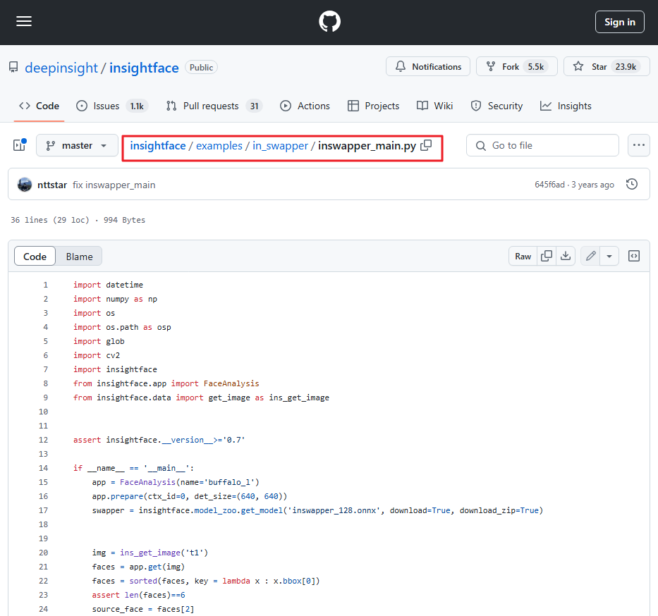 ◼ insightfaceexamples/in_swapper/ inswapper_main.py 에서 코드가져오기