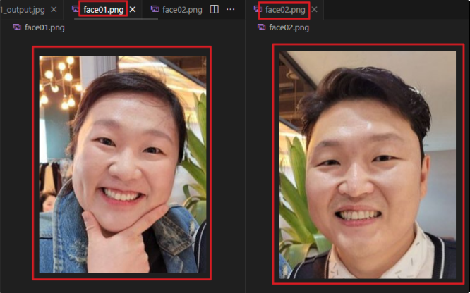 # step 4 추론 - 두 이미지에서 얼굴 검출 및 특징 추출