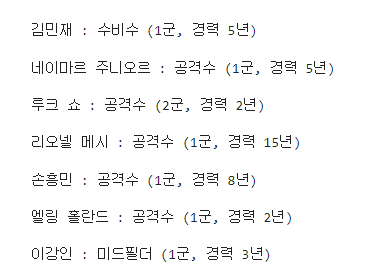 각 선수의 주 포지션, 다양한 포지션에서의 경험 등을 고려하고