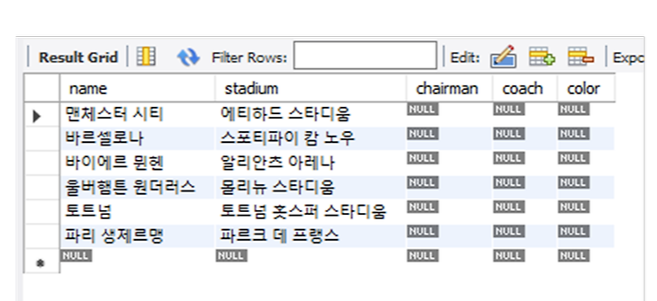 : 선수가 속한 클럽 (ex. 토트넘, 파리 생제르맹, 맨체스터 시티, 바르셀로나, 바이에르 뮌헨...)