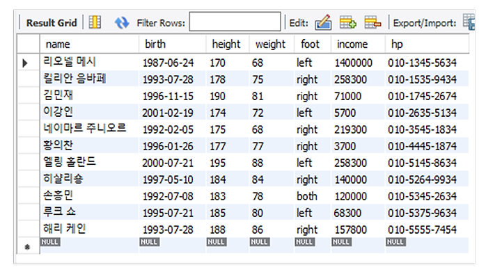 이에는 선수의 이름, 생년월일, 연락처 등이 포함됩니다.