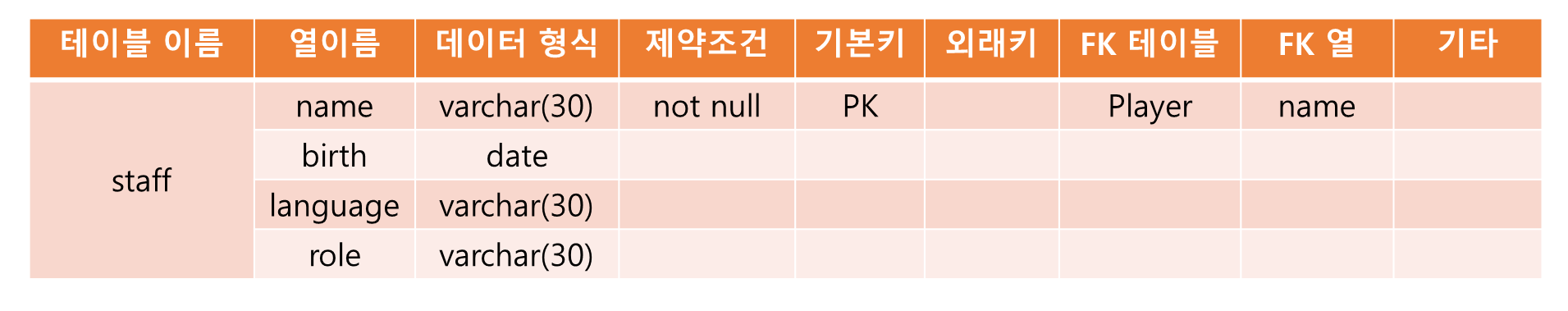 : 선수를 케어해주는 담당 스텝 (ex. 김종태, 브리스, 톰, 오성윤, 데이비드....)