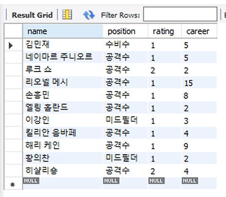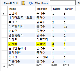 sql = 'update player set position=%s, rating=%s, career=%s where name=%s'