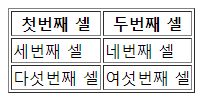 <td>다섯번째 셀</td><td>여섯번째 셀</td>