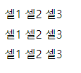 <td>셀1</td> <td>셀2</td> <td>셀3</td>
