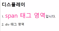 <h2>디스플레이</h2> 1. span 태그 영역입니다.