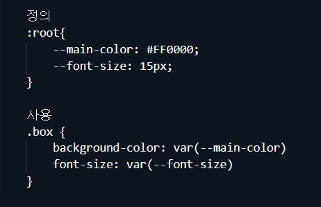 CSS의 속성값을 재사용하고 동적으로 변결할 수 있게 해주는 기능