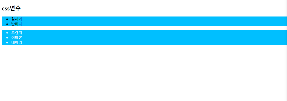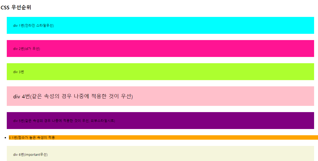 - 외부 스타일 시트와 내부 스타일 시트의 적용은 순서에 따라 나중에 적용한 것이 우선