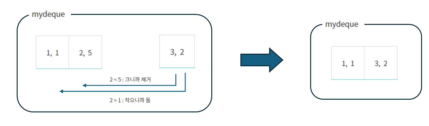 if mydeque[0][1] <= i - L: # 범위에서 벗어난 값은 덱에서 제거