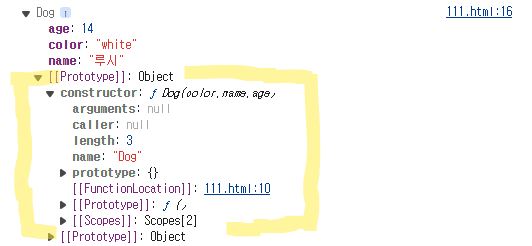 const dog = new dog() // Dog.prototype, Object.prototype // 루시객체 생성자, 함수 추가 Rucy.family='포메라니안';