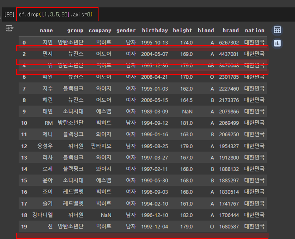 # 인덱스가 1, 3, 5, 20인 행들을 삭제